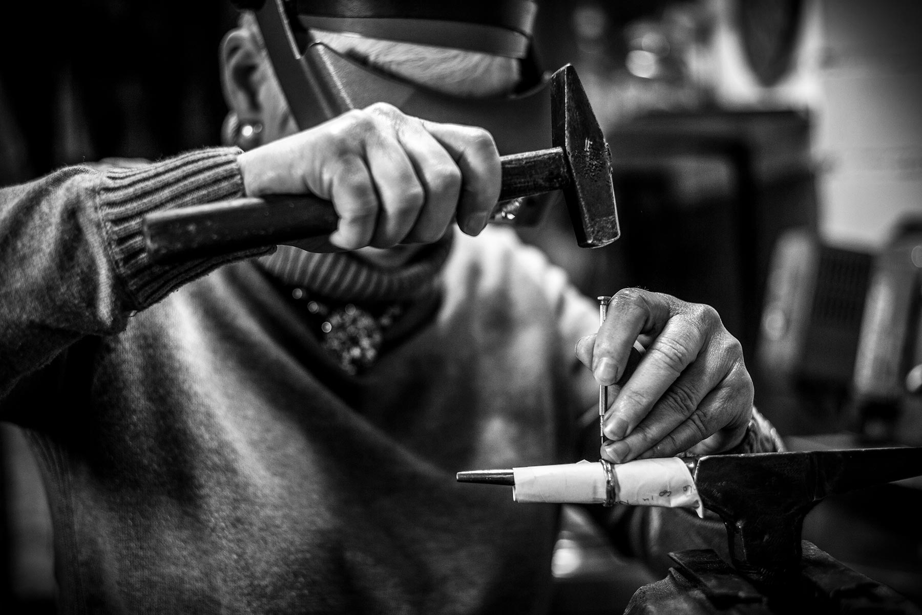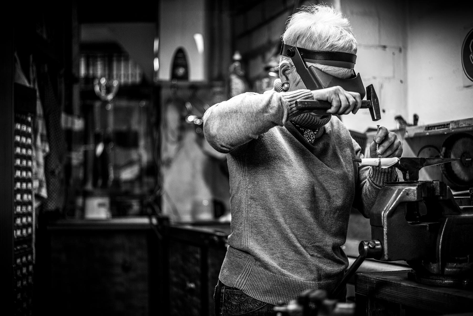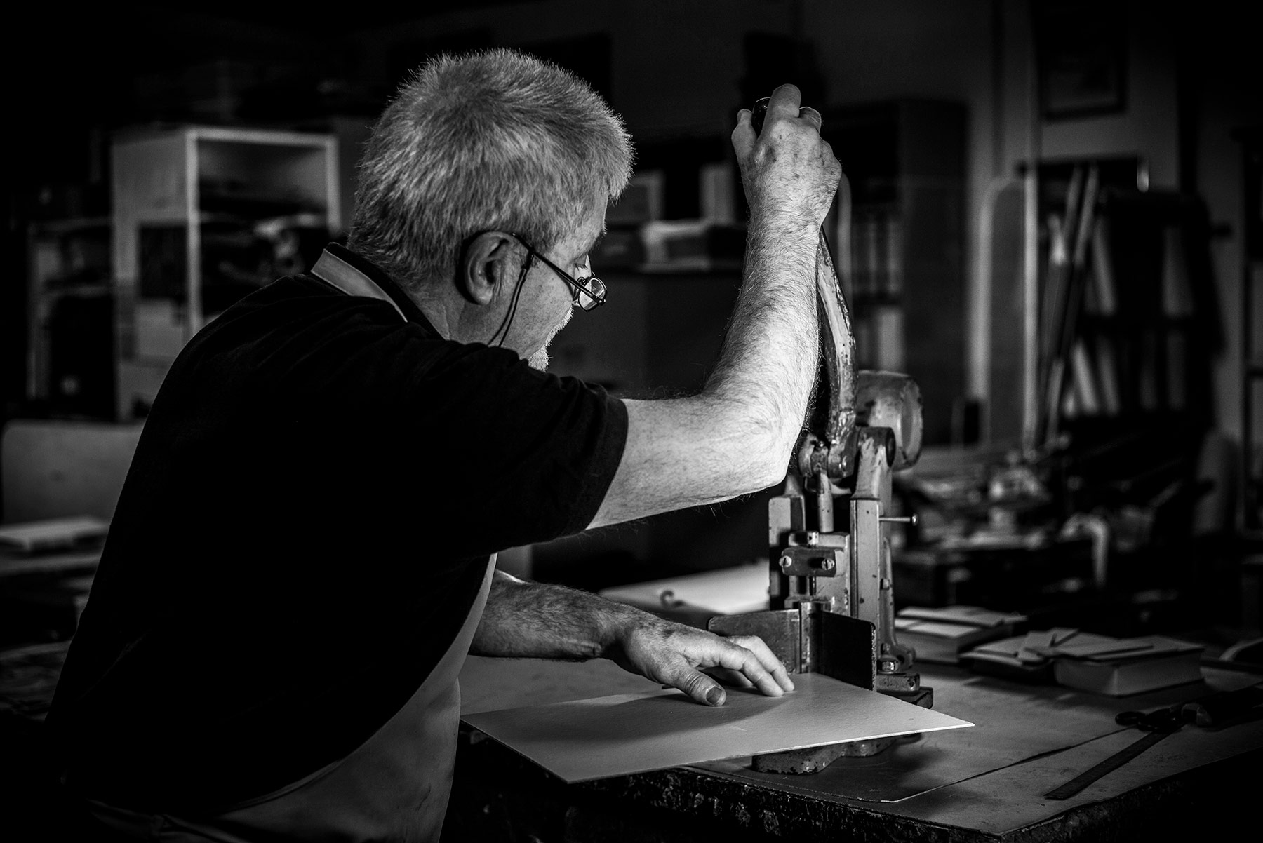 Das Handwerk ist Kern und wesentlicher Teil des Mittelstandes in Deutschland. Als die große Wirtschafts- und Gesellschaftsgruppe nimmt das Handwerk maßgeblichen Einfluss auf das öffentliche Leben bei uns. Der Privatverbraucher, die Industrie, der Handel oder auch die öffentliche Hand – das deutsche Handwerk bietet ein breites, differenziertes und vor allem qualitativ hochwertiges Angebot an Waren und Dienstleistungen. Individuelle Produkte und Problemlösungen sind die Domäne und Stärke des Handwerks. Ich selbst erarbeite die Fotografien mit einer Messsucher Kamera von LEICA. Das Handwerk muss handwerklich eingefangen werden.
